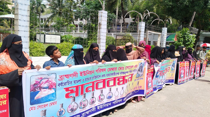 নারায়ণগঞ্জের আড়াইহাজার উপজেলার ব্রাহ্মন্দী ইউনিয়নের ৩ নম্বর ওয়ার্ডের সদস্য (মেম্বার) মো: সোহেল আহমেদকে হত্যা ও দোষীদের শাস্তির দাবিতে মানববন্ধন মানববন্ধন করেছে নিহতের স্বজনরা। মঙ্গলবার (৭