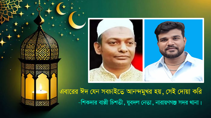 পবিত্র ঈদুল ফিতর উপলক্ষে সর্বস্তরের মানুষকে আন্তরিক শুভেচ্ছা জানিয়েছেন নারায়ণগঞ্জ চেম্বার অব কমার্স অ্যান্ড ইন্ডাস্ট্রিজের সিনিয়র সহ-সভাপতি এবং বিকেএমইএ’র সহ-সভাপতি